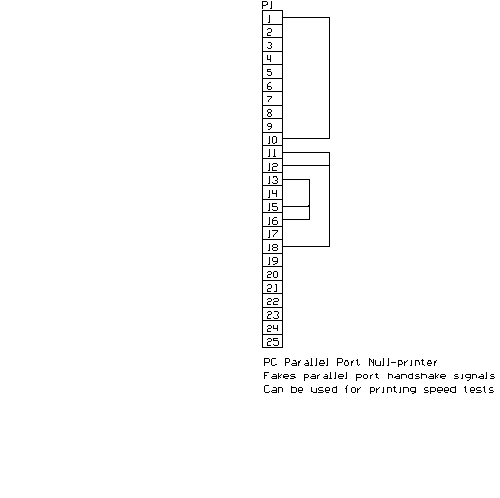 The circuit is very easy to built inside the printer connector shell. The circuit can be easily shown in ASCII and graphical presentation. All pin numbers are for 25 pin D connector (as in PC parallel port).
