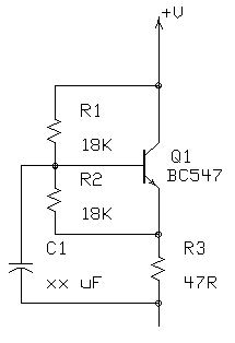 This circuit is one transistor gyrator circuit which can be easily adjusted to simulate different inductance coils just by changing the value of capacitor C2. The value of inductance the circuit simulates is approximally simulates has value of 1 henry for every 2 microfarads in C2. So if you want to make 5 henry coil simulator, you just use 10 uF electrolytic.